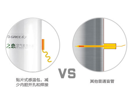 貼片式感溫包設(shè)計(jì),杜絕感溫盲管泄漏隱患 采用貼片感溫包,可減少內(nèi)膽體開孔,減少焊點(diǎn),同時(shí)取消感溫盲管,減少感溫盲管腐蝕泄漏的隱患;工藝性更好,更耐用。 |